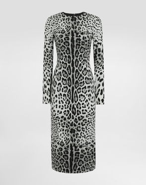 Charmeuse Calf-length Sheath Dress With Leopard Print