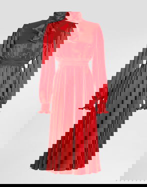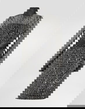 Long Pleated Dress With Micro-sequin Embellishment