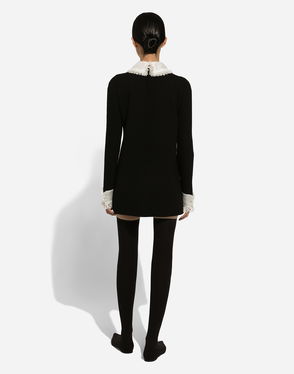 Short Wool Crepe And Organza Dress