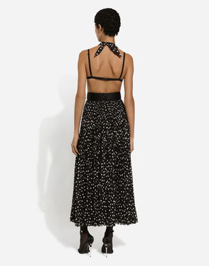Tulle Calf-length Dress With Draping And Polka-dot Print