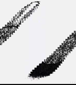 Feather-trimmed Floral Lace Midi Dress