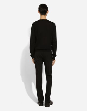 Wool Round-neck Sweater With Bejeweled Buttons
