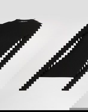Ribbed Viscose Sweater With Metal DG Logo Pin