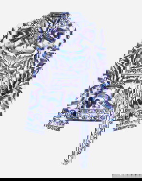 Long Sleeveless Silk Chiffon Dress With Majolica Print