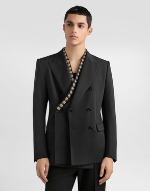 Double-breasted Sicilia-fit Jacket In Embroidered Satin