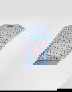 Small Rose-Print Jersey And Poplin Dress With DG Logo