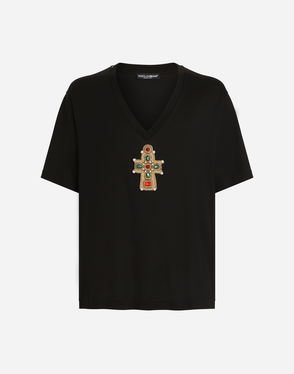 FINE-RIB COTTON GRANDDAD-NECK T-SHIRT WITH LONG SLEEVES