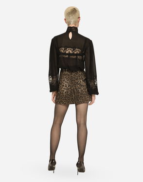Short-sleeved Silk Satin Jacquard Pajama Shirt With DG Logo