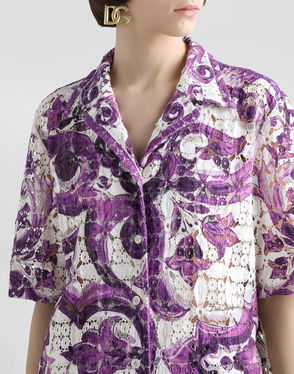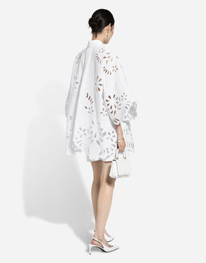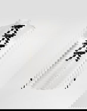 Oversize Cotton Poplin Shirt With Lace Appliqués