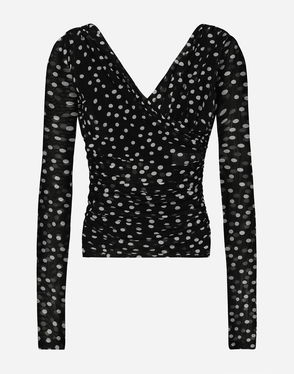 Silk Organza Jacquard Blouse With Polka-dot Design And Pussy-bow