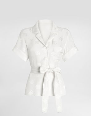 Short-sleeved Silk Satin Jacquard Pajama Shirt With DG Logo