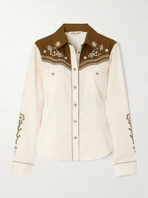 Cassandra Bead-embellished Embroidered Cotton-blend Poplin Shirt