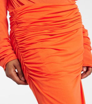 Gathered Cotton-blend Jersey Maxi Skirt
