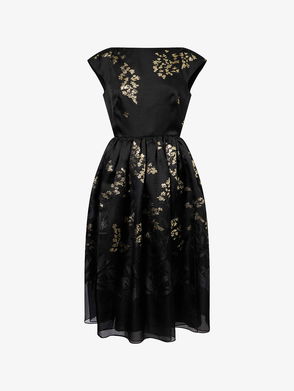Fil Coupé-Floral Cap-Sleeve Organza Midi Dress