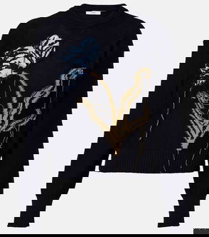 Flower-Embroidered Crewneck Wool-Blend Jumper