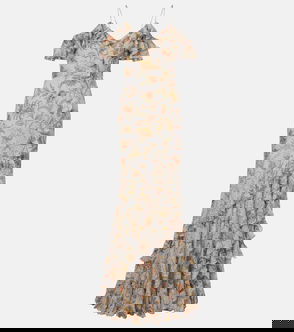 Floral Polka-dot Ruffled Silk-blend Maxi Dress