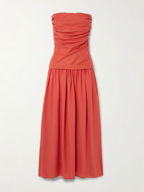 Hedy Strapless Gathered Linen And Voile Maxi Dress