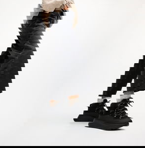 F-MODE Teddy-Collar Warm Suede Lace-Up Booties Leather/Suede/Rubber