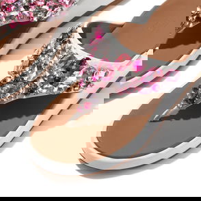 F-MODE Crystal-Mix Flatform Strappy Back-Strap Sandals Leather Crystal Covered Microfibre