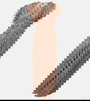 Gathered Floral-Print Stretch-Mesh Maxi Dress