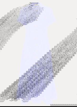 Floral Short-Sleeves Cotton-Blend Midi Dress