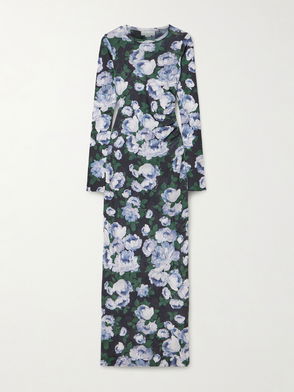 Emmaretta Shirred Floral-Print Organic Cotton-Voile Midi Dress