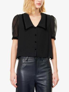 The Velvet Trim Sailor Silk Blouse