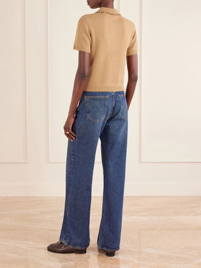 Whipstitched Leather-trimmed Wool And Cashmere-blend Polo Shirt