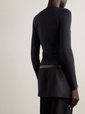 The Rib Splay Long-Sleeves Stretch-Woven Top