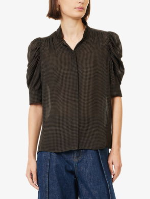 The Houndstooth Gillian Puffed-Short-Sleeves Silk Top