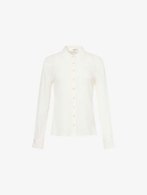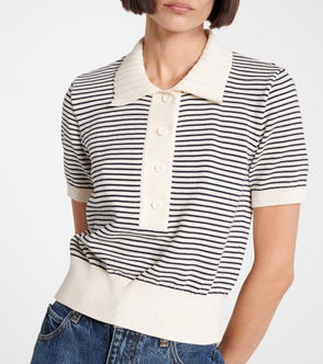 Stripe Gathered Puff Sleeve Shirt, White/Navy