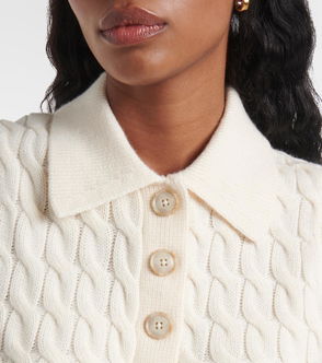 Cable Knit Pure Wool Polo Vest Top, Cream