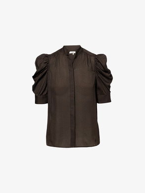 The Houndstooth Gillian Puffed-Short-Sleeves Silk Top