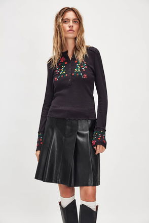 Fleur Embroidered Cuff Top