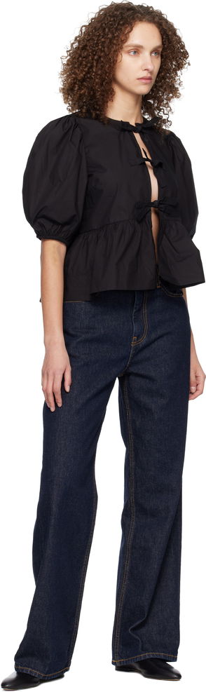 Tan Leopard Cotton Poplin Peplum Tie Blouse