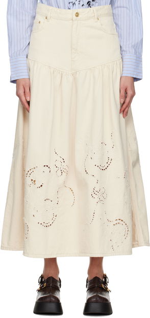 Off-White Broderie Anglaise Denim Maxi Skirt