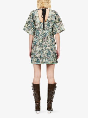 Tapestry Short-Sleeves Woven Mini Dress