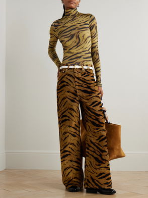 Zebra-print Cotton-blend Velveteen Wide-leg Pants