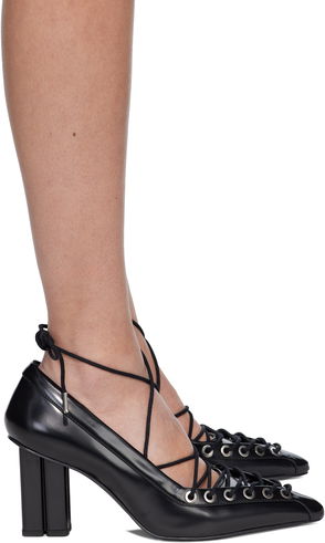 Black Eyelets Lace Up Mule Heels