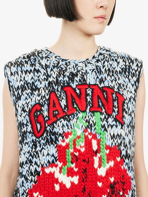 Embroidered-Logo Ruching-Straps Wool-Blend Jumper