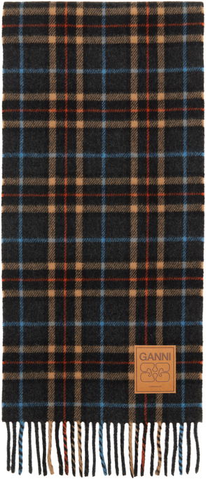 Gray Check Wool Scarf