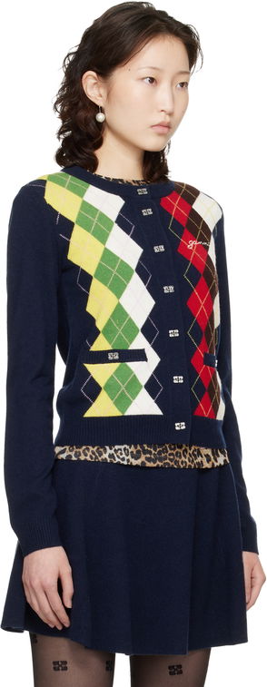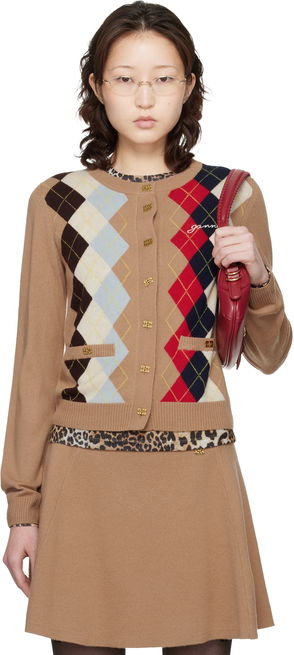 Embroidered-Logo Argyle Wool-And-Cashmere Cardigan