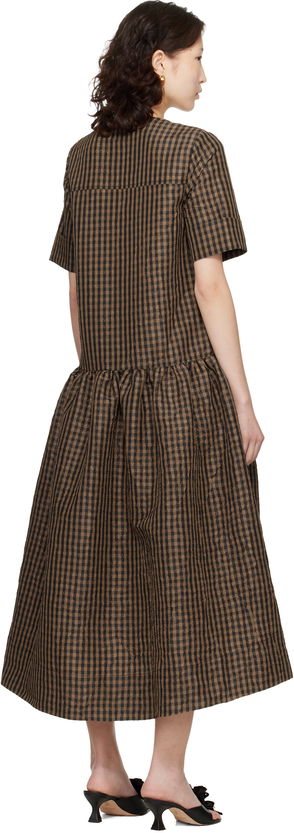Brown Crinkled Check Maxi Dress
