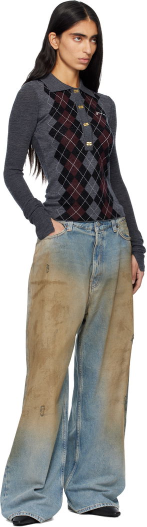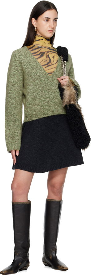 Green Brushed Mohair Mix Deep V-Neck Sweater