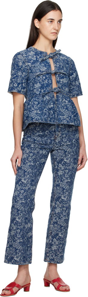 Tan Leopard Cotton Poplin Peplum Tie Blouse