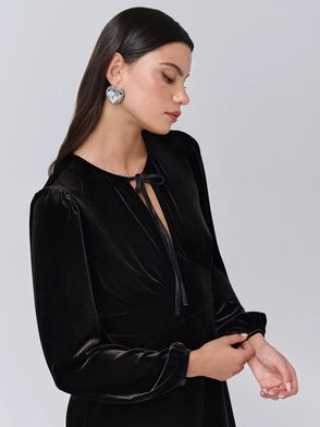 Elenanor Velvet Long Sleeved Tie Front Dress