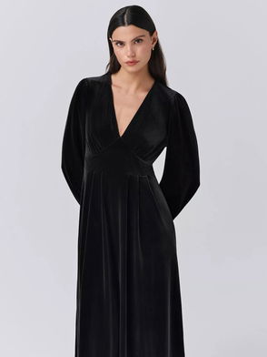 Kimberley Velvet V-Neck Midi Dress, Black