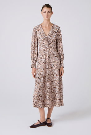 Savannah Floral Puff Sleeve Tie Neck Midi Dress