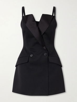 Double-Breasted Faille-Trimmed Grain De Poudre Wool Blazer
