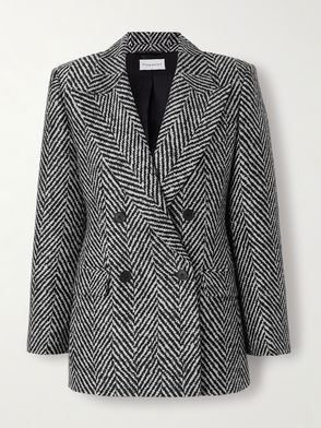 Double-Breasted Faille-Trimmed Grain De Poudre Wool Blazer